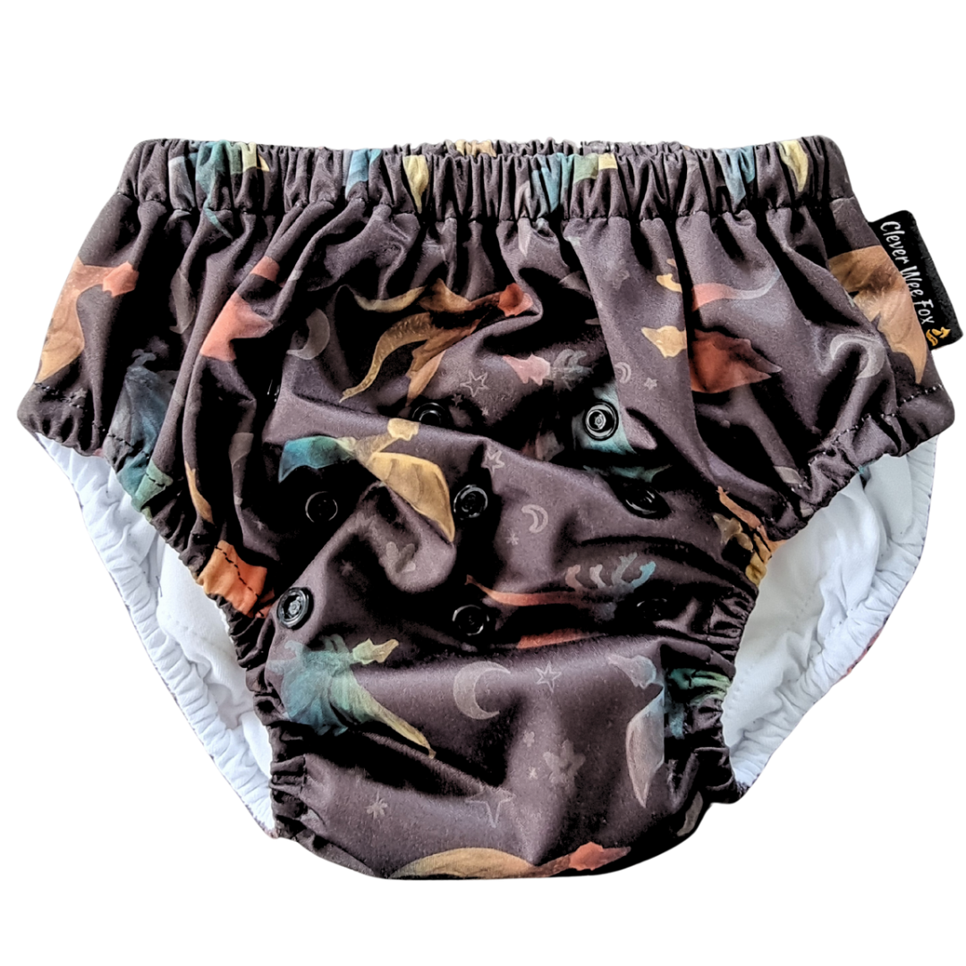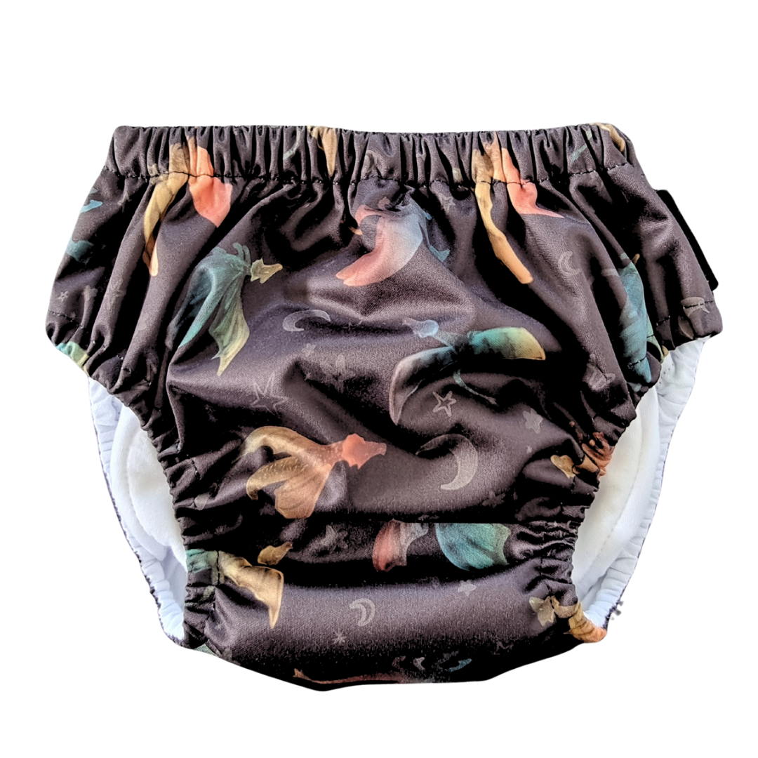 Our pull-up training pants are designed to help with the toilet training process. They are made with a PUL waterproof outer layer, several layers of bamboo terry to absorb wees, and a cotton lining so your little one can feel wet to help them understand the aim of toilet training. They feature a wide hourglass absorbency zone to give maximum leak protection with a little pocket at the back in case you need to boost them with extra absorbency.
