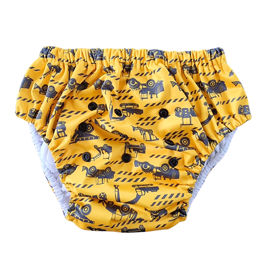 Our pull-up training pants are designed to help with the toilet training process. They are made with a PUL waterproof outer layer, several layers of bamboo terry to absorb wees, and a cotton lining so your little one can feel wet to help them understand the aim of toilet training. They feature a wide hourglass absorbency zone to give maximum leak protection with a little pocket at the back in case you need to boost them with extra absorbency.